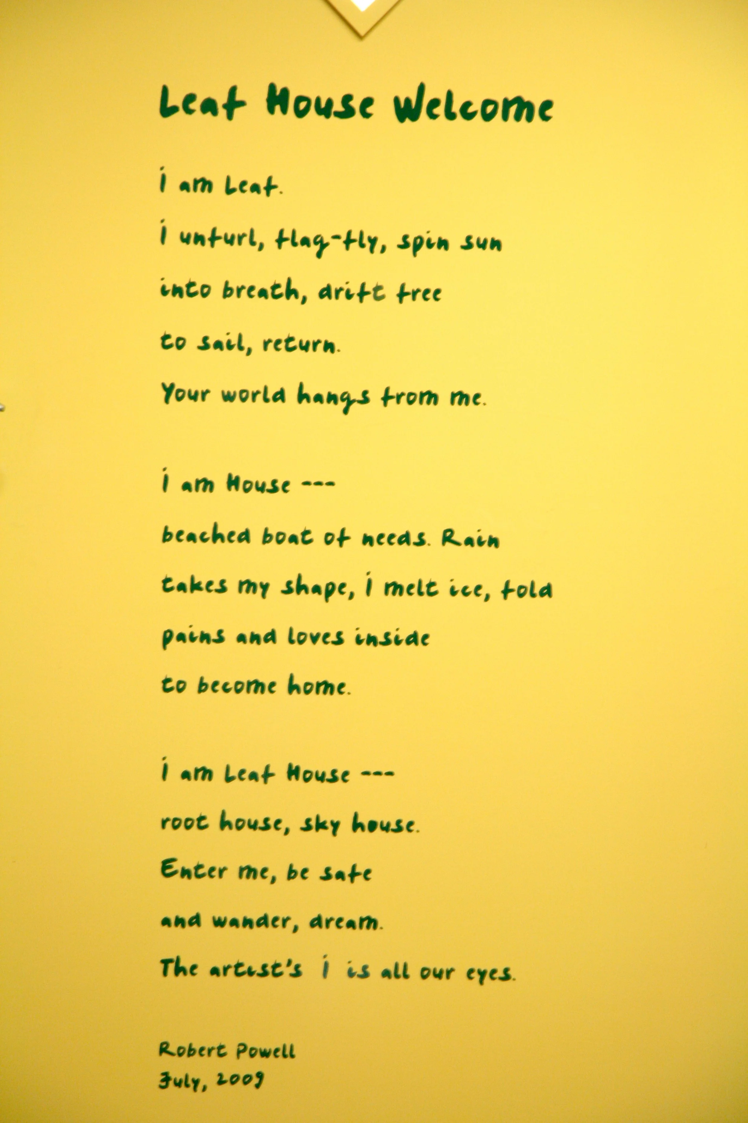 Robert Powell varttui Kanadassa, mutta asuu Isossa-Britanniassa. Hän toimi pitkään Wakefieldiläisen taidekeskuksen Beamin johtajana. Runoilijana ja toimittajana hän on tehnyt yhteistyötä kuvataiteilijoiden, muusikoiden ja performanssitaiteilijoiden kanssa ja julkaissut useita runoteoksia. Lehtitalolle hän kirjoitti tervetolorunon ulko-oveen, joka on luettavissa vain eteisen vastakkaisella seinällä olevan pelin kautta.